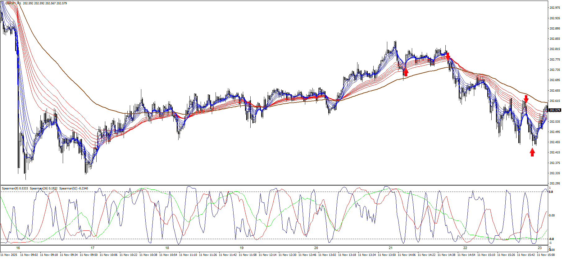 かなり強く下げたので、「戻り売りが狙えるかなぁ?」という目で見ていましたが、その後はジリジリと上昇してショートは狙えず。
