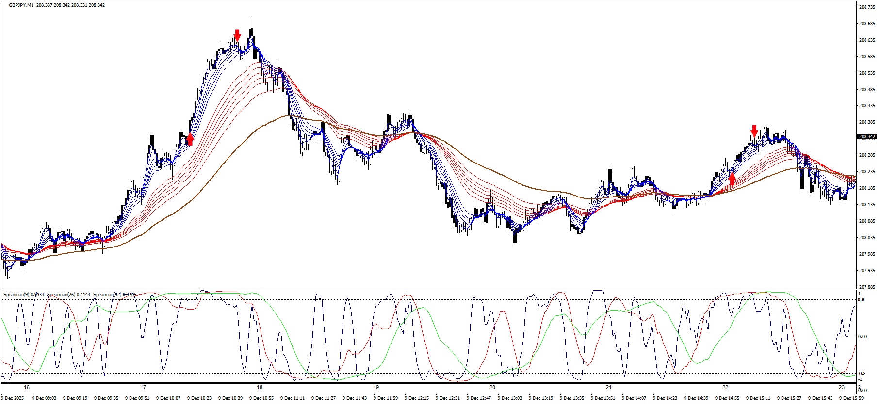 トレード開始時から上げていてすぐに208円を抜けてきました。