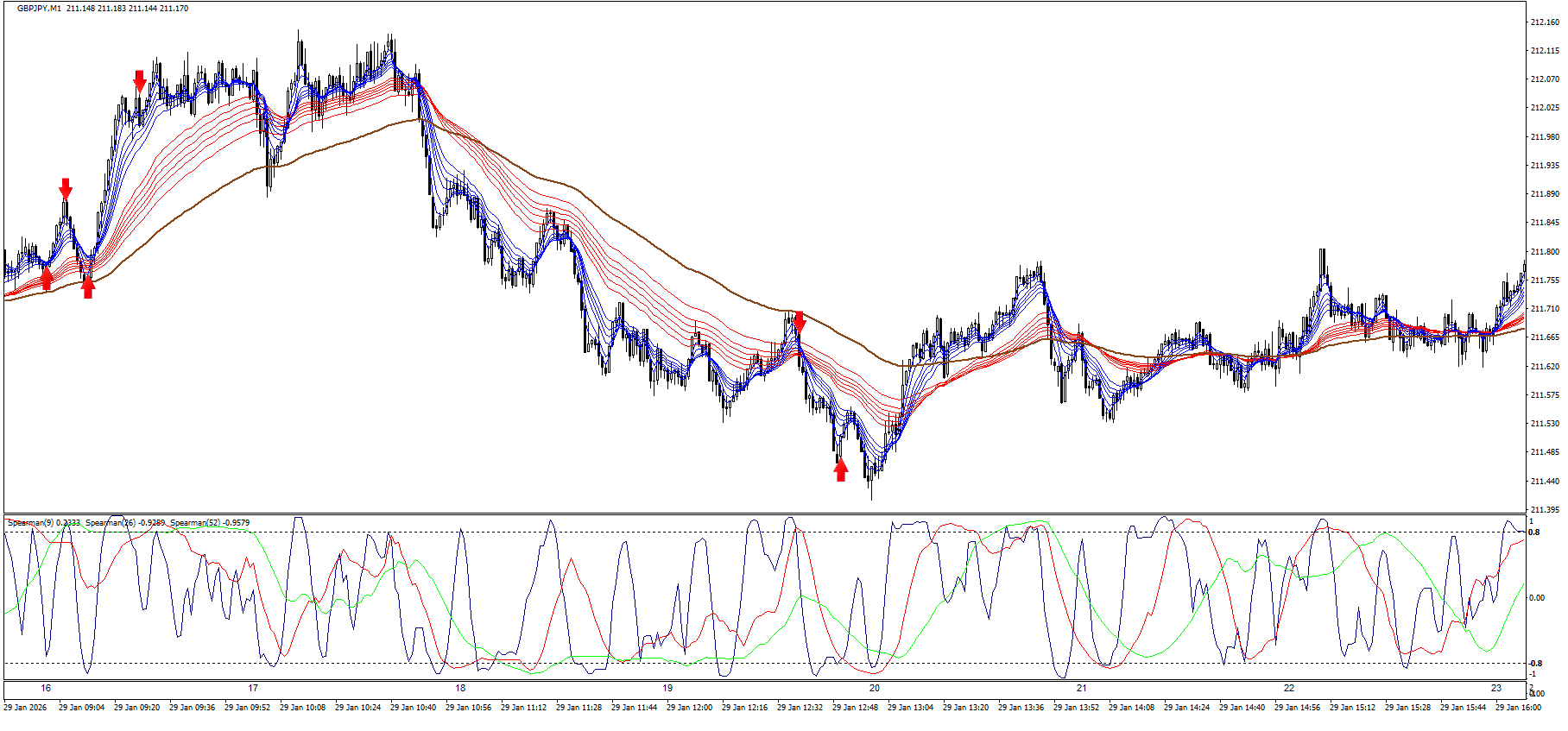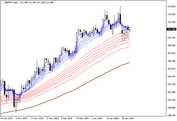引き続き長期EMA群と短期EMA群を上下していますね。