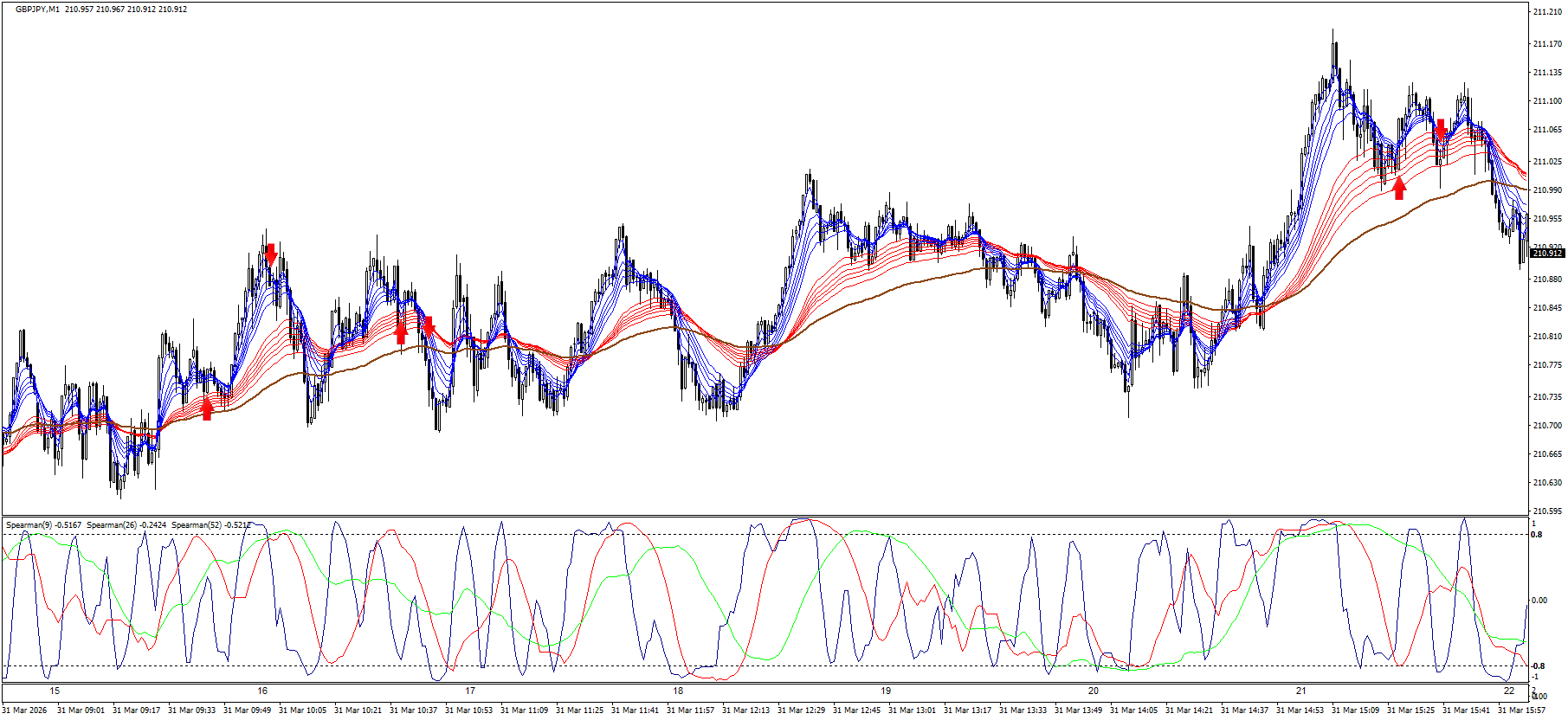 現在はGMMAとEMA100の間の中に価格がありますので、これだとEMA100にタッチしそうだなぁ…という所。